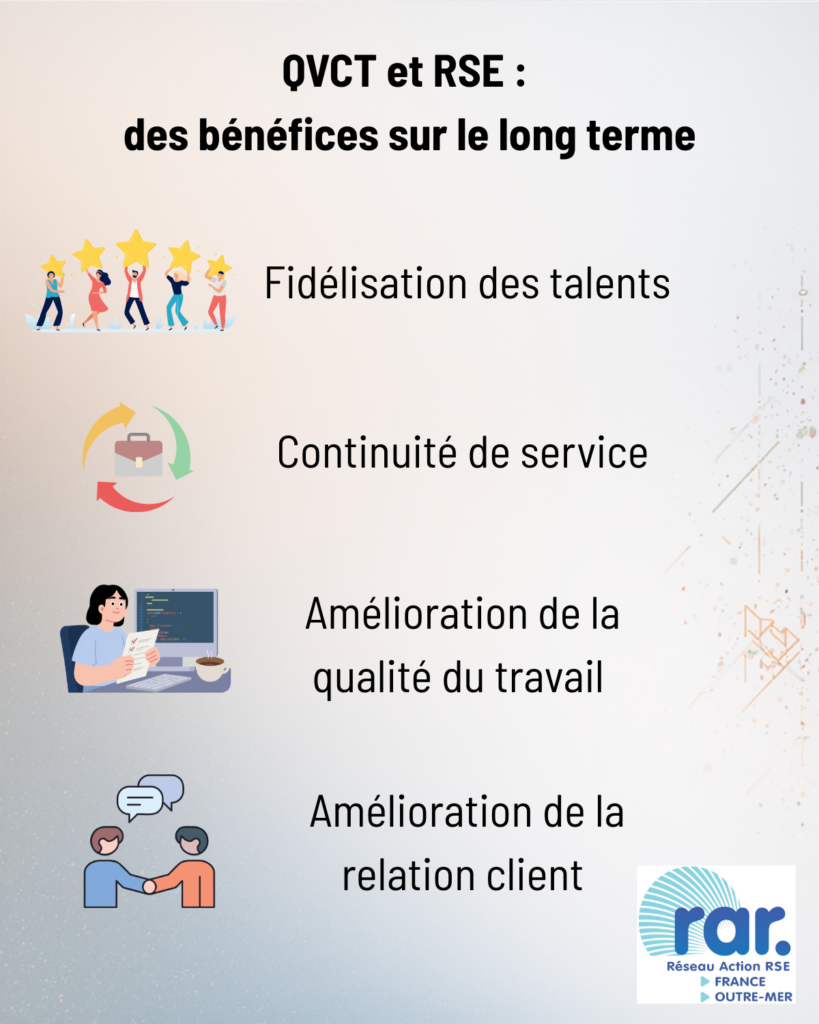 Ce duo QVCT/RSE peut également influencer le climat collectif et l’engagement des équipes.